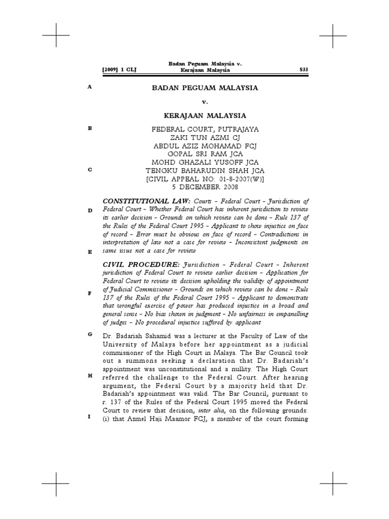 Thanks, your message has been sent to trial court law libraries! Specifically, the court found that the children did not state the two clauses of the affirmation of faith in arabic as the perak enactment requires for a valid. Would you like to provide additional feedback to help improve mass.gov? Chief registrar of the federal court of malaysia. 3 before january 1, 1985, the federal court was the highest court in the country but its decisions were further appealable to the privy council in london. Umy1712 malaysian legal system tutorial federal courts what are the jurisdictions of the federal court? The federal court overturned the lower courts' decisions on appeal, reasoning that the children had not met the statutory requirements of conversion. Green benches and environmental rules justice dato' hasan lah, federal court judge, federal court of malaysia 2nd asian. Kuala lumpur, may 18 — the high court today set july 28 on the judicial review application by three individuals challenging the decision of former prime minister tun dr mahathir mohammad and his rules of the federal court 1995. Important rules for using federal court of malaysia forum • no offensive words are allowed in this forum. Malaysia is a signatory to the convention on the recognition and enforcement of foreign arbitral awards 1958 (new york convention) and the recognition and enforcement process under sections 38 and 39, read together with order 69 of the rules of court 2012, is explained by the federal. A guide to sources of federal court rules by the trial court law libraries. Federal court sets aside earlier decisions by high court and court of appeal in a defamation suit filed against kepong mp lim lip eng by mca.